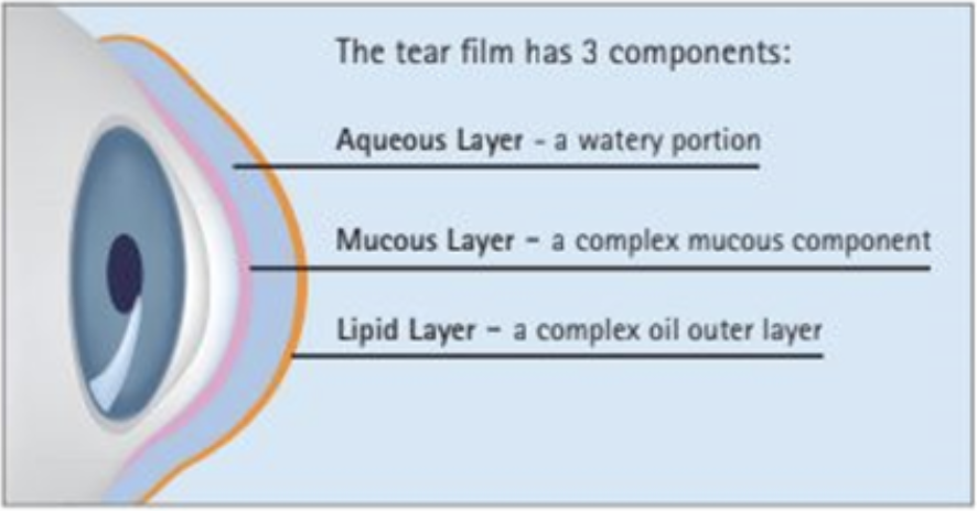 The oil component (lipid) is important for reducing evaporation of tears. It is produced by the meibomian glands. Meibomian gland dysfunction can create a deficiency in the lipid component of the tears, which leads to evaporative dry eye.