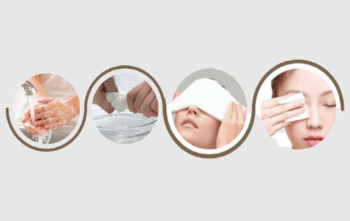 At the first stage of managing blepharitis and dry eye disease, warm compresses help to loosen and dissolve blockages in the meibomian glands, while regular lid hygiene cleanses the eyelid margins of debris and bacteria. This foundational approach promotes healthier gland function and reduces discomfort.
